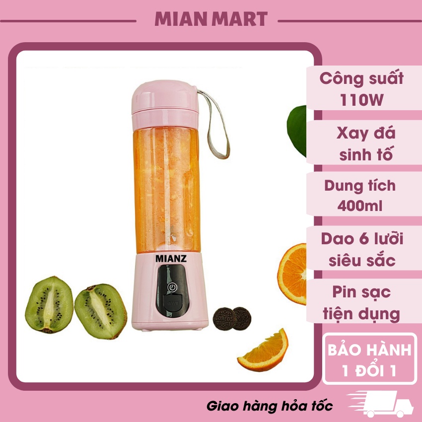 Máy xay sinh tố cầm tay, máy xay mini MIANZ 6 lưỡi sạc pin tiện dụng 420ml, công suất 110w - MIAN MART free ship