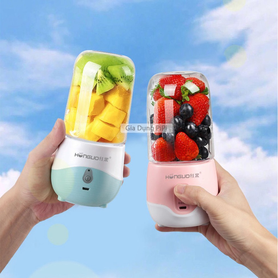 Máy xay sinh tố cầm tay mini sạc pin, Máy say sinh tố cầm tay đa năng mini 300ml Honguo free ship